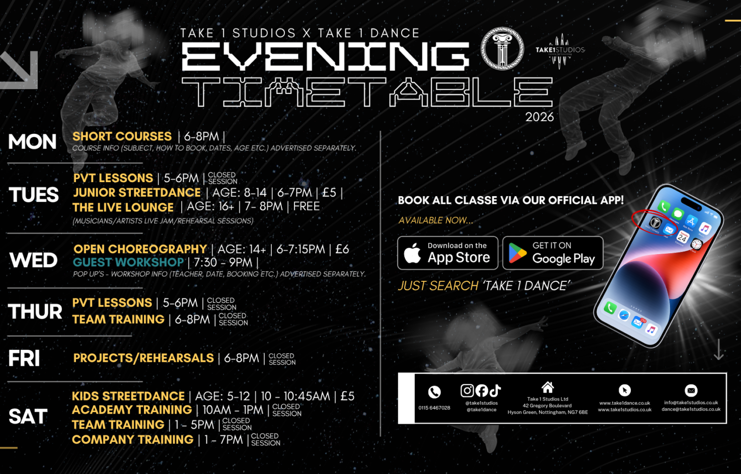 Experience the excitement of dance at Take 1 Dance! Our studio offers a wide range of classes suitable for all ages, from children as young as 4 to enthusiastic adults.